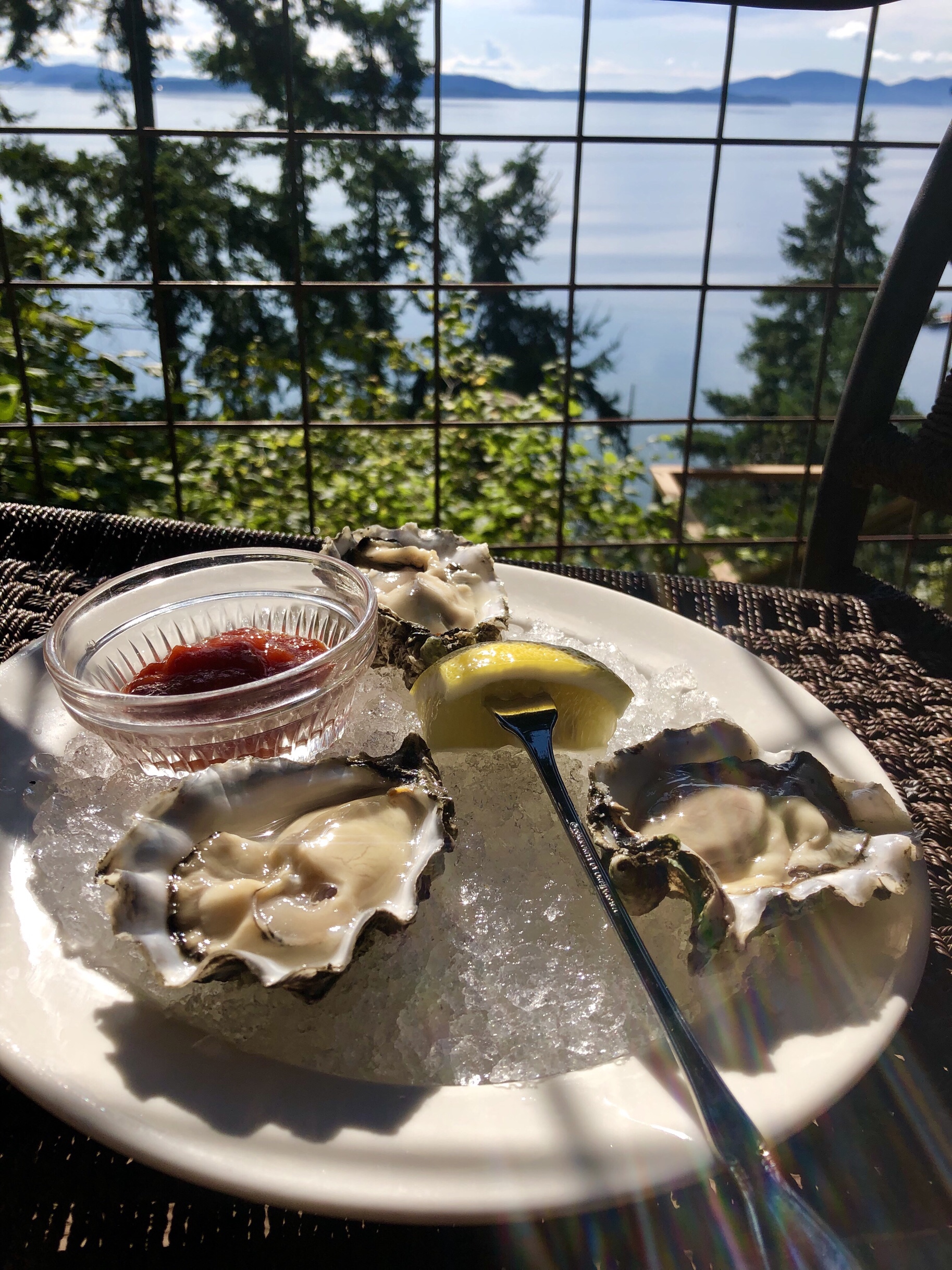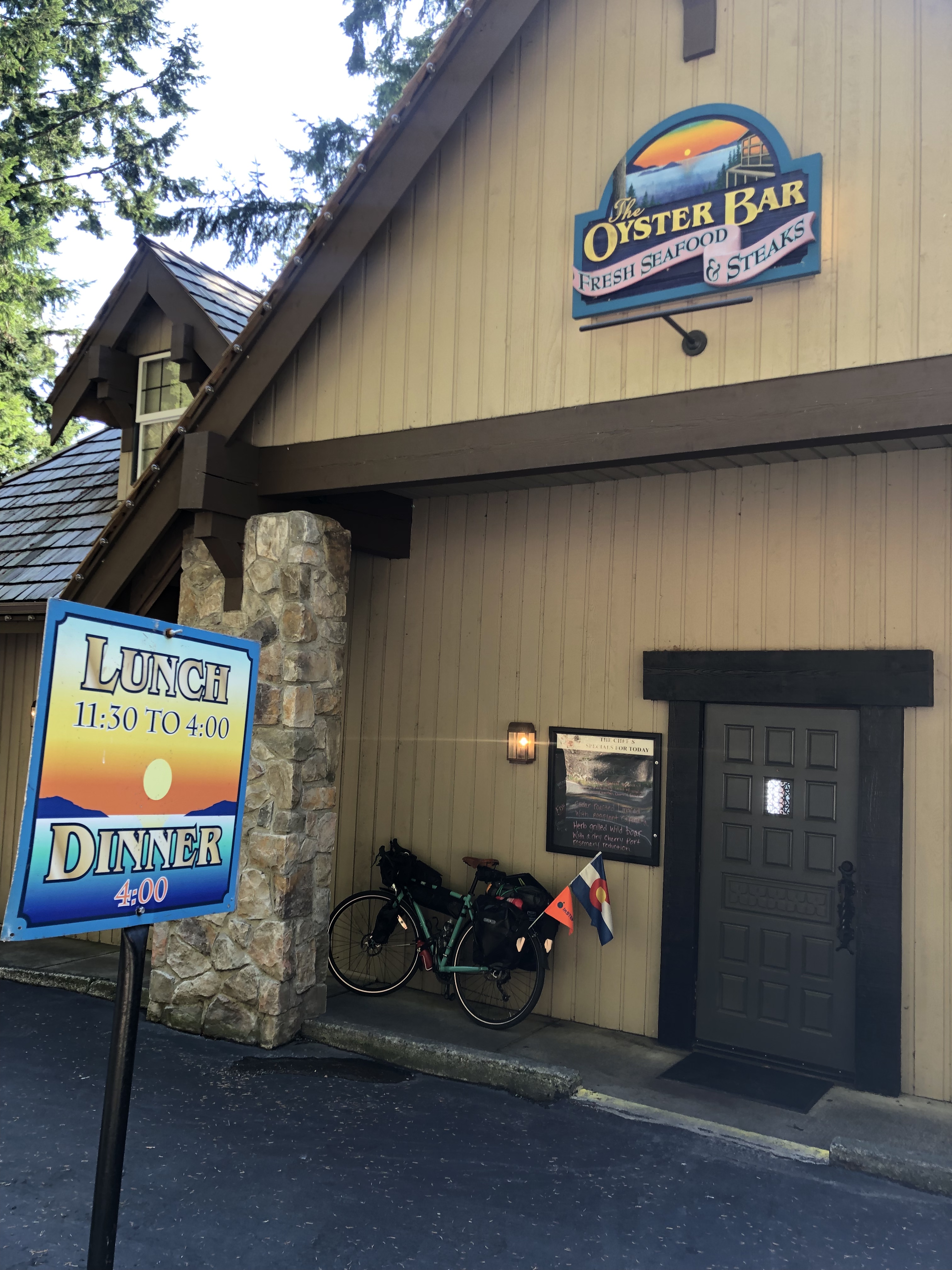 As I headed south out of Bellingham, the road started climbing steeply into a dark, dense, wet and mossy forest! Things got interesting as this beautiful road continued to climb and descend with undulations, twists and turns. I rode along side another cyclist who was out for an afternoon ride and chatted as we road for about 10 miles. As I was riding back down the steep decent into the valley, out of nowhere and completely isolated, I noticed a small oyster bar/restaurant. I decided to stop, went in and had the most amazing fresh plump oysters you can ever imagine. Off I went again pedaling south in hopes of getting to my next camp ground called Deception Pass State Park at Rosario Beach.