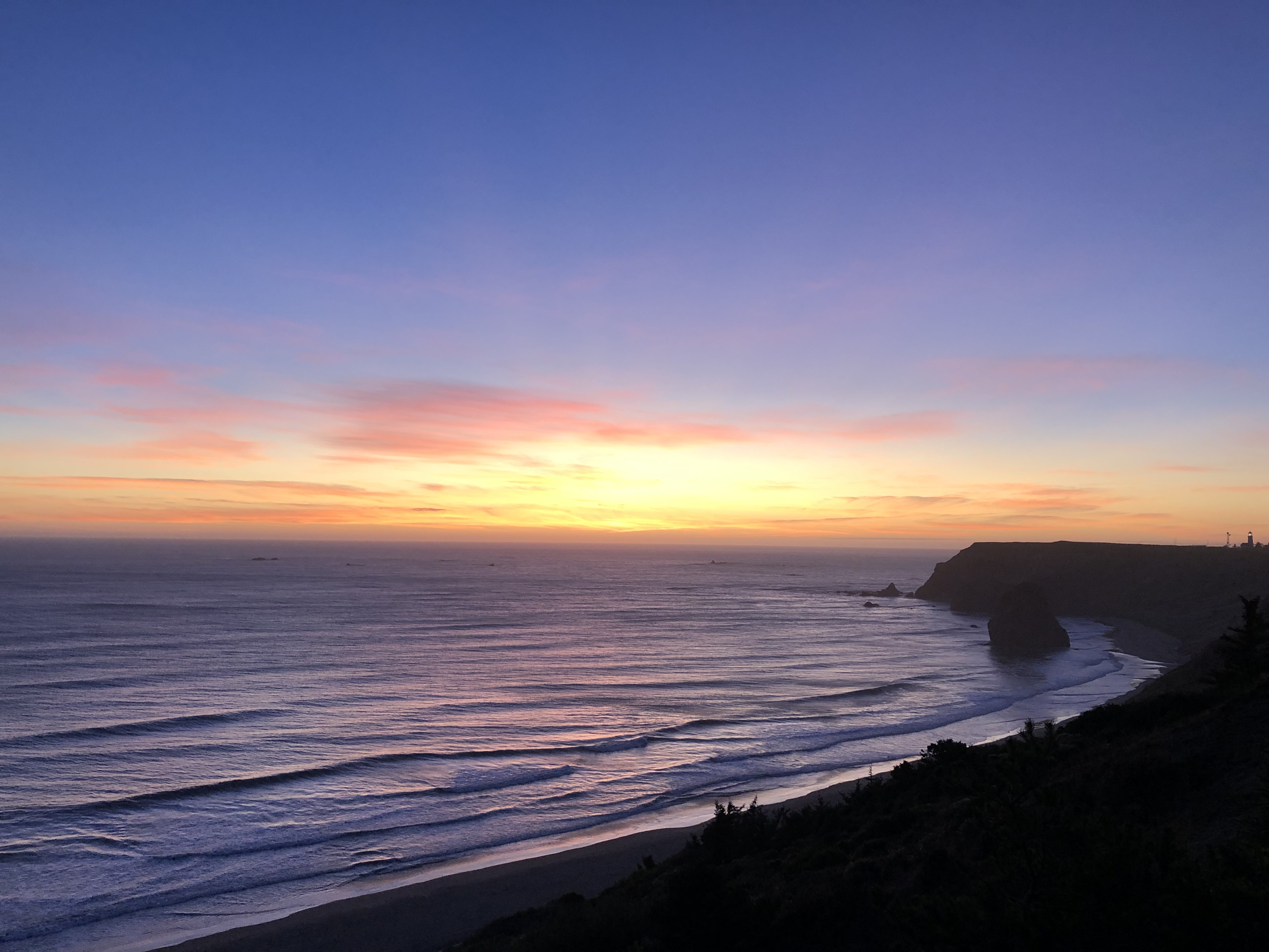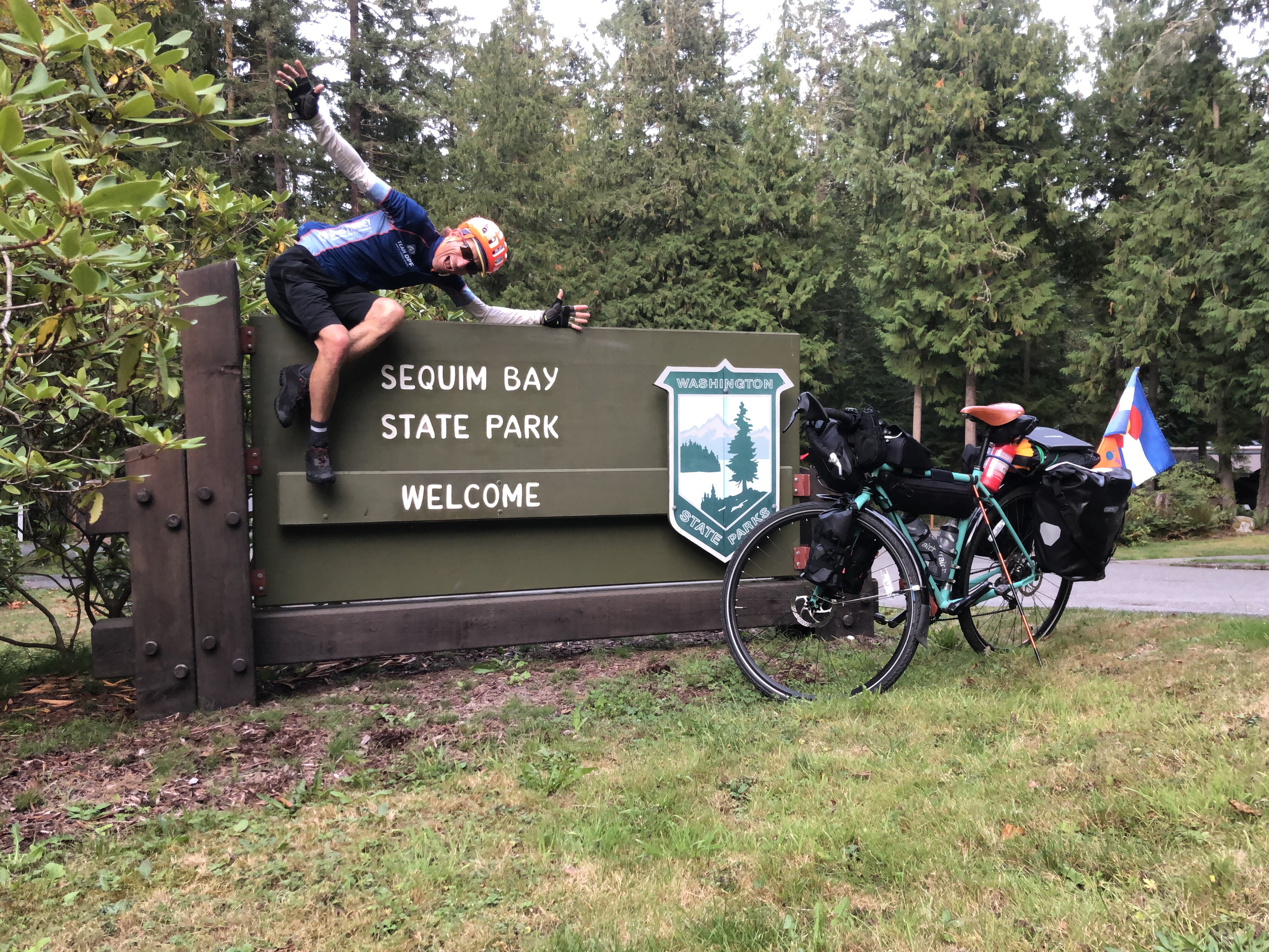 I finally reached the US border and as I was riding up to it I wasn’t sure if I should be in the car lane or the pedestrian lane. Within a few seconds a border patrol agent came over and directed me into the car lane which actually surprised me. I rode through answered a few questions from the gate agent and just like that I was through the border. From there I rode another 2 to 3 miles down the coast to a beautiful state park called Birchbay. As I rode into the park the sun was setting over the bay which only gave me about 30 minutes to unpack set up the tent and get dinner preparations started. All worked well I had my freeze dried lasagna which was surprisingly good and crawled in my tent and quickly fell asleep after my 72 mile ride that day. What an amazing first day it was!