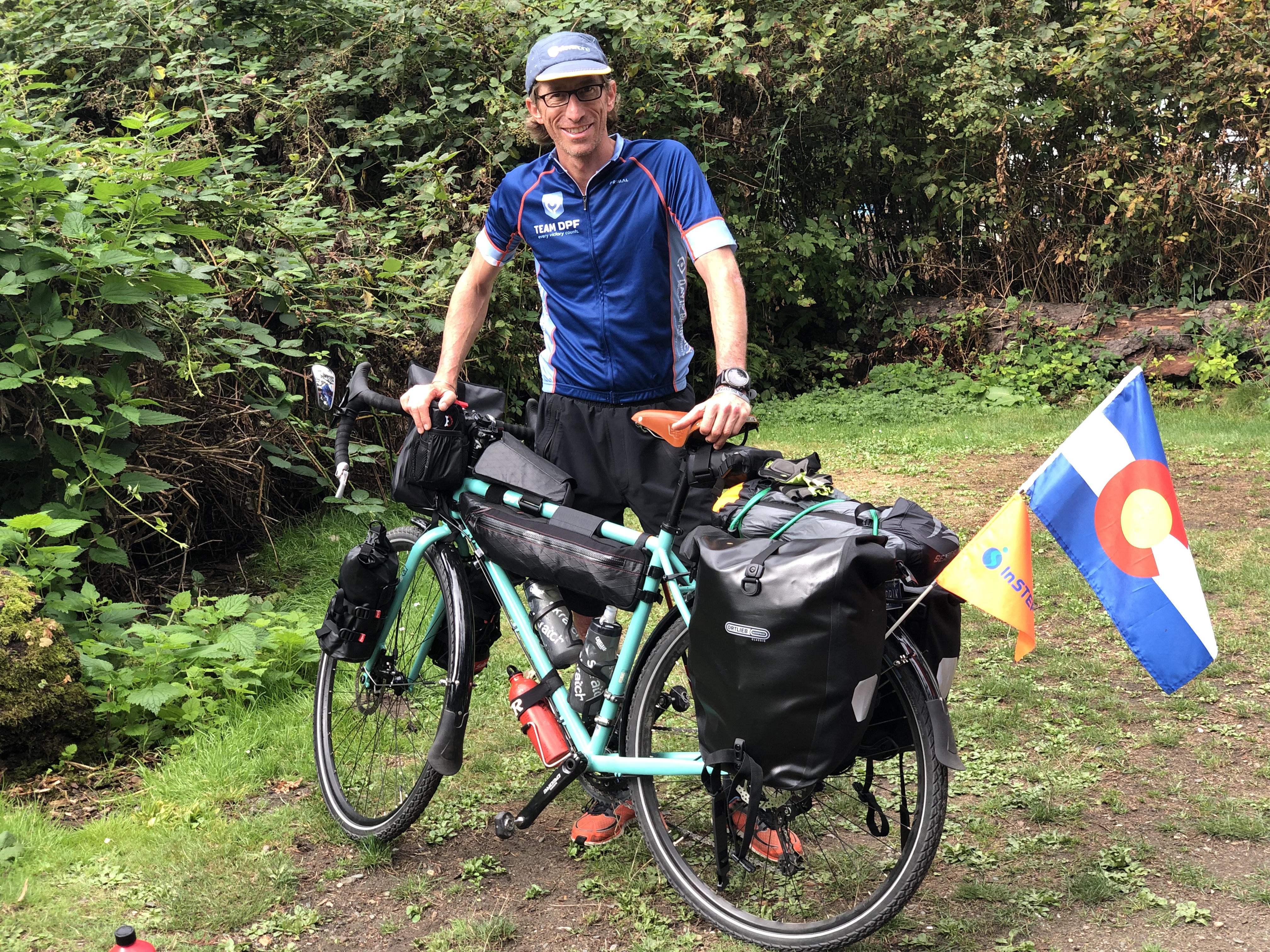 As I was preparing in the months ahead of this bike trip, I had been contemplating dedicating this trip to some important cause, but no one particular idea was capturing me. Then a few days before my departure Jenny suggested that I dedicate my ride to the Davis Finney foundation! voilà! Why hadn’t I thought of this? But of course this was the perfect idea and solution and I immediately became so excited! My ride now had the greater purpose I was seeking and this was a perfect fit! On my behalf Jenny quickly reached out to Duane to let him know about this idea and asked if could create a facebook fundraiser on the foundation’s behalf. One day later I received an official DPF jersey and set up a fundraiser link on Facebook and off I went to the airport to start my journey! I am happy and fulfilled with each petal stroke I make in honor of DPF. Additionally, I take every opportunity with the many people I meet to explain and educate about this great cause I am riding for.