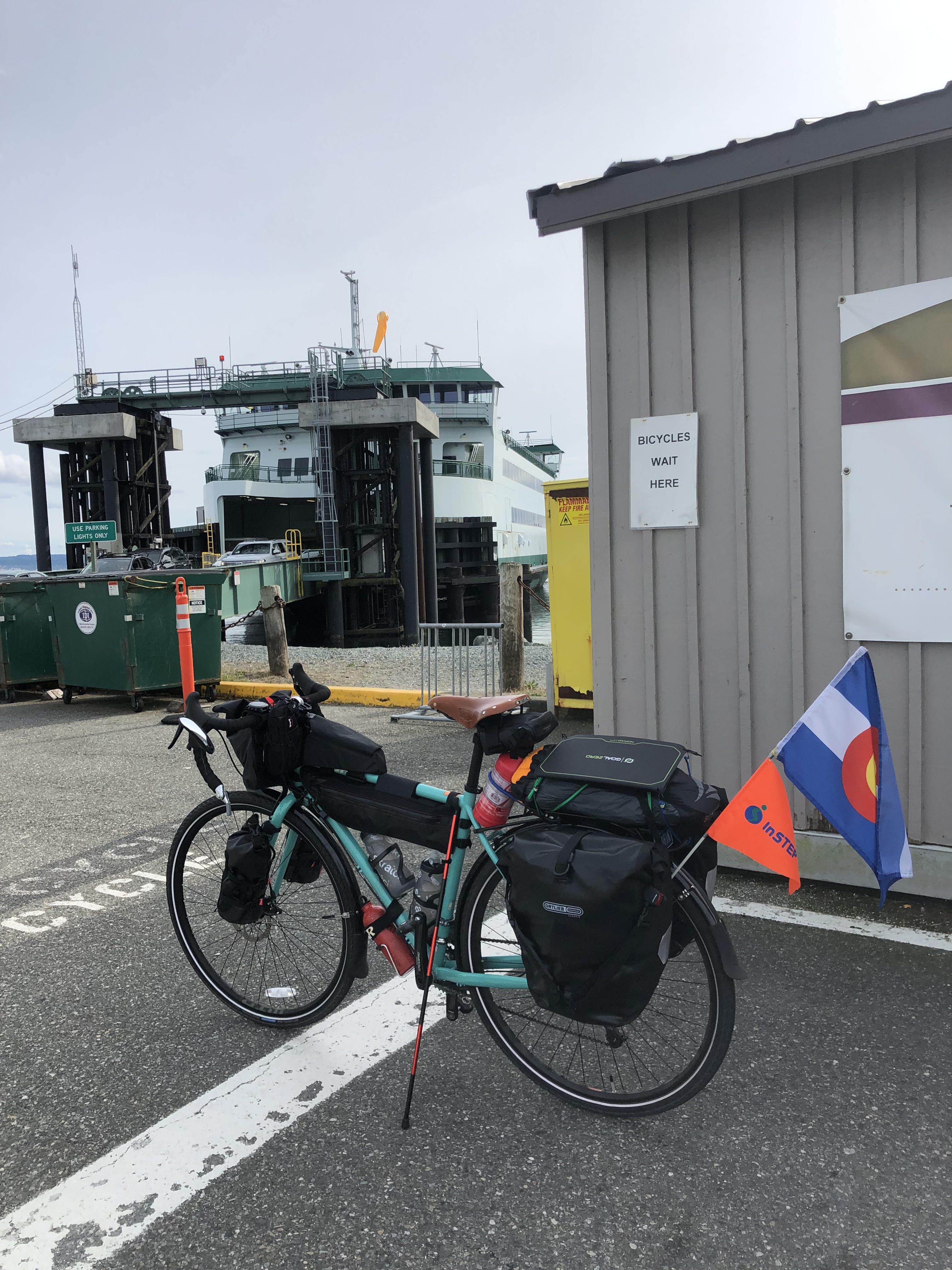 Day three began at about 6 AM with an alarm clock consisting of wild birds squawking in the trees high above my camp. As I slowly came out of deep sleep, I realized where I was which brought a smile to my face. Almost immediately it was quite evident I wasn’t in Colorado anymore… as I was staring up at the roof of my tent, I could see the moisture and dew which had accumulated on my rainfly overnight. I got up and started heating some water for some awesome instant coffee (from my good friends at Alpine Start) and for some freeze dried oatmeal with blueberries which actually was quite delicious. after returning from the impressively clean bathrooms, I ran into a couple from Steamboat Springs Colorado (Larry and Laura) and had a brief but fun exchange with them. I finally jumped on my bike around 10:30a and slowly headed south through the town of Ferndale and then stopped in Bellingham at a cool Pizzeria and had two delicious slices of New York style pepperoni pizza.